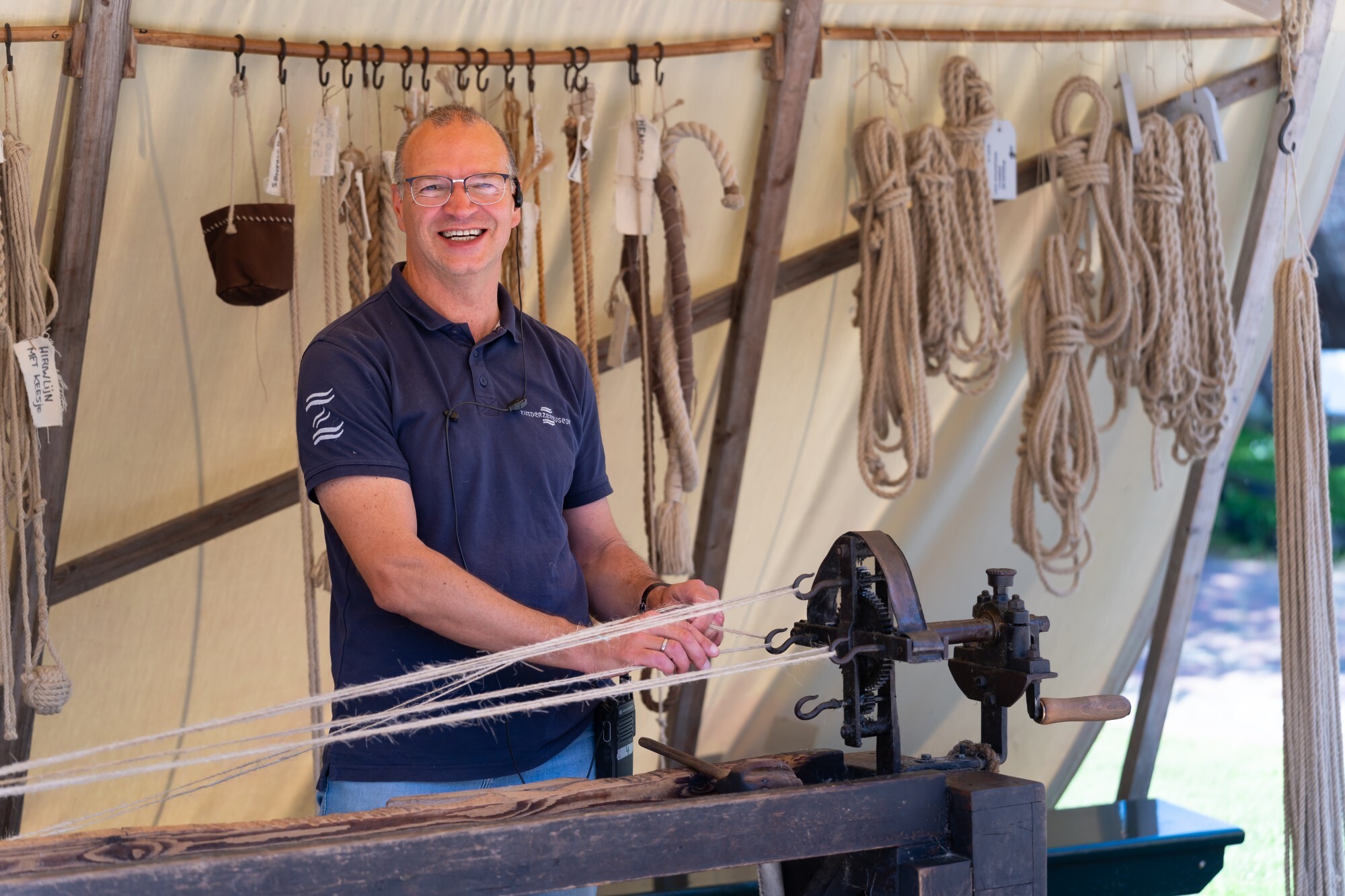 Lijnbanen of touwslagerijen waren bedrijven waar touw werd vervaardigd voor scheepstimmerwerven, zeilmakerijen, visserij en veehouders. Bij de touwslagerij in het museum worden uit dunne strengen vlasgaren verschillende soorten touwen geslagen: zoals waslijnen, scheepstouwen en springtouwtjes. Bekijk het mechanisme en luister ondertussen naar de touwslager die uitleg geeft over dit ambacht en de werking van de lijnbaan.